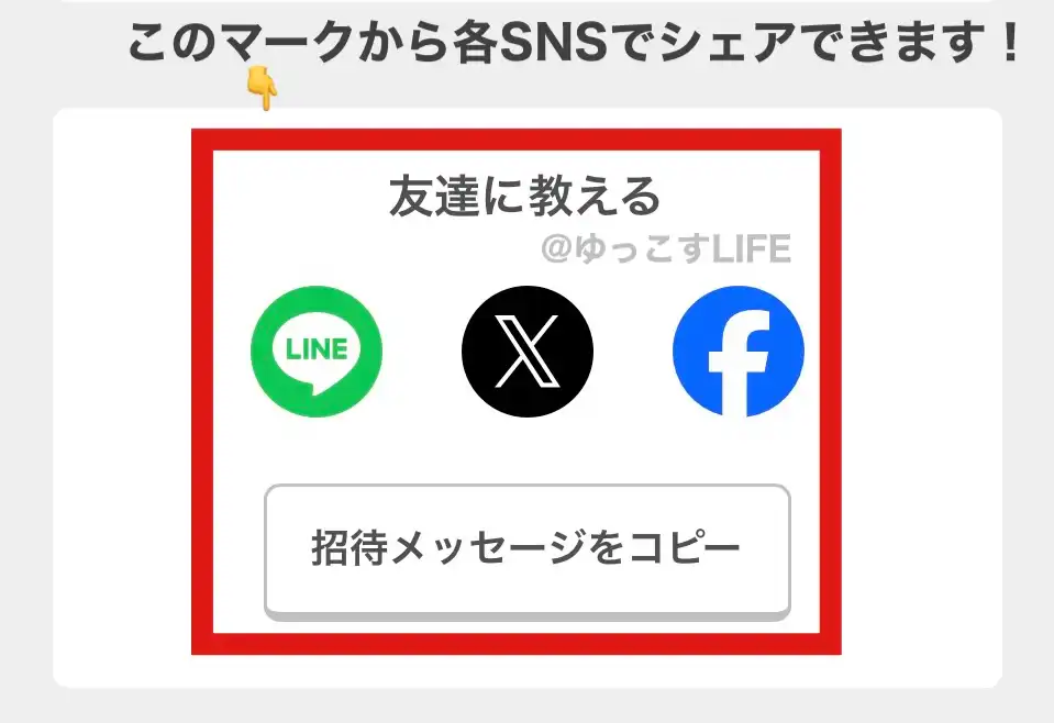 あなた自身が紹介する場合は、SNSなどで招待メッセージと招待コードを教えましょう!